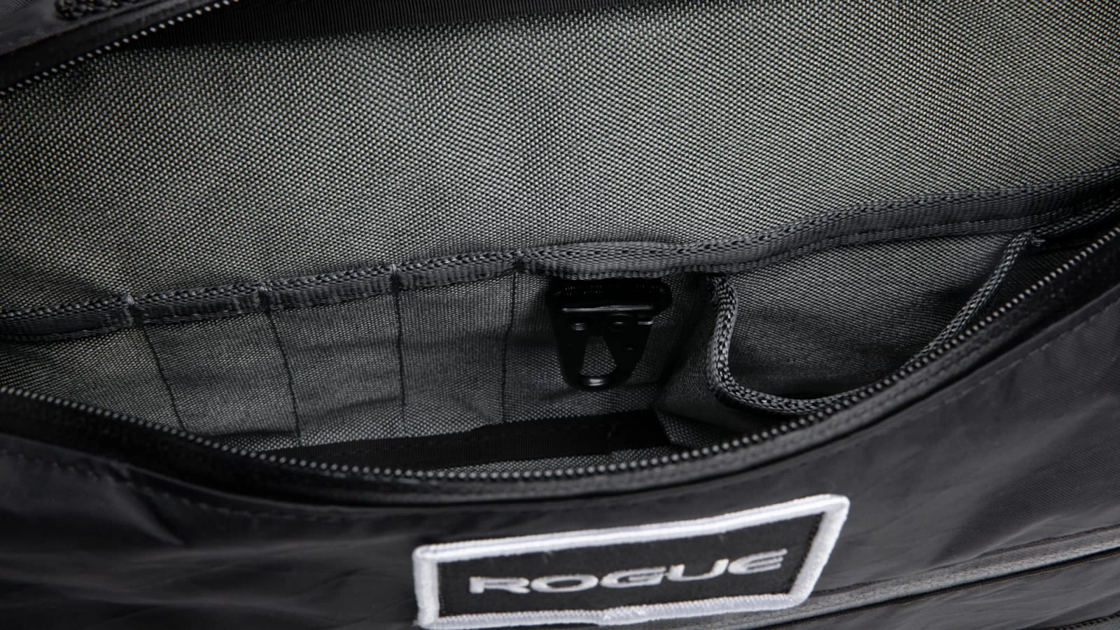 This exclusive Rogue-branded version of DEFY’s Insidious Sling carry bag is hand-made in Chicago, IL, utilizing a unique multi-layered composite fabric called X-Pac™. First developed for use in specialized racing sails, X-Pac includes a 210D Ripstop nylon face fabric, X-Ply mesh, and a polyester film + light 50D taffeta backing with a water-resistant coating.* Adapted for a multipurpose duffel bag, this combination creates a lightweight but structurally sound material that’s rainproof up to 200 PSI, UV resistant, and able to retain its shape no matter how many gym lockers, trunks, or overhead bins it gets stuffed into.