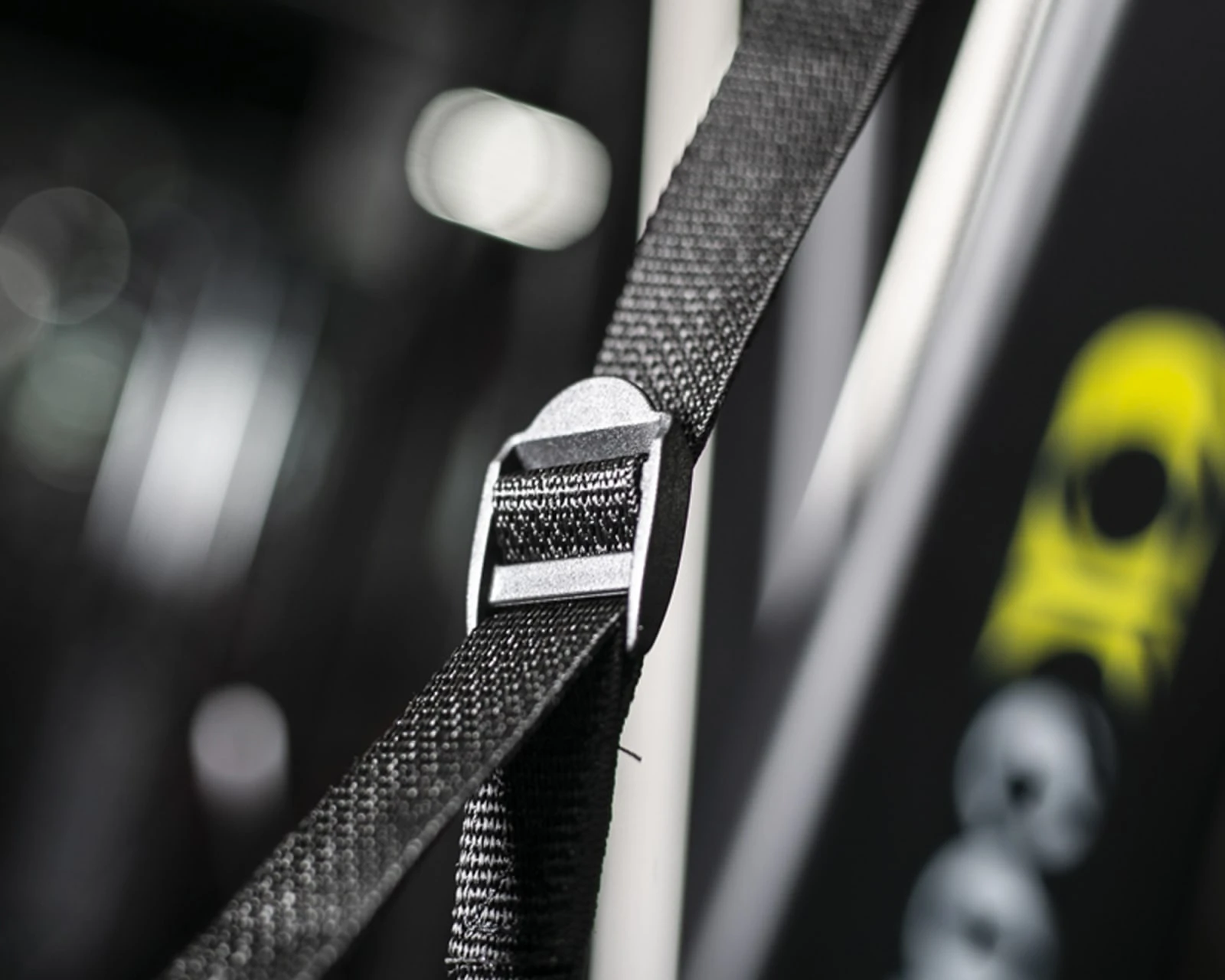 Designed specifically for use with the Concept 2 SkiErg—an industry leading Nordic skiing machine—the extension kit features (2) polypropylene webbing straps with a loop on one end and a handle on the other. The loops cinch around the bottom of the existing SkiErg grips, while the adjustable handle portion of the straps hang down to a max extension length of 28″ from the standard grips. Each 1.125″ (handle) diameter handle includes a foam outer layer for comfort, and can be easily tightened/loosened so that athletes with limited dexterity can still pull the device with little to no grip strength required.
