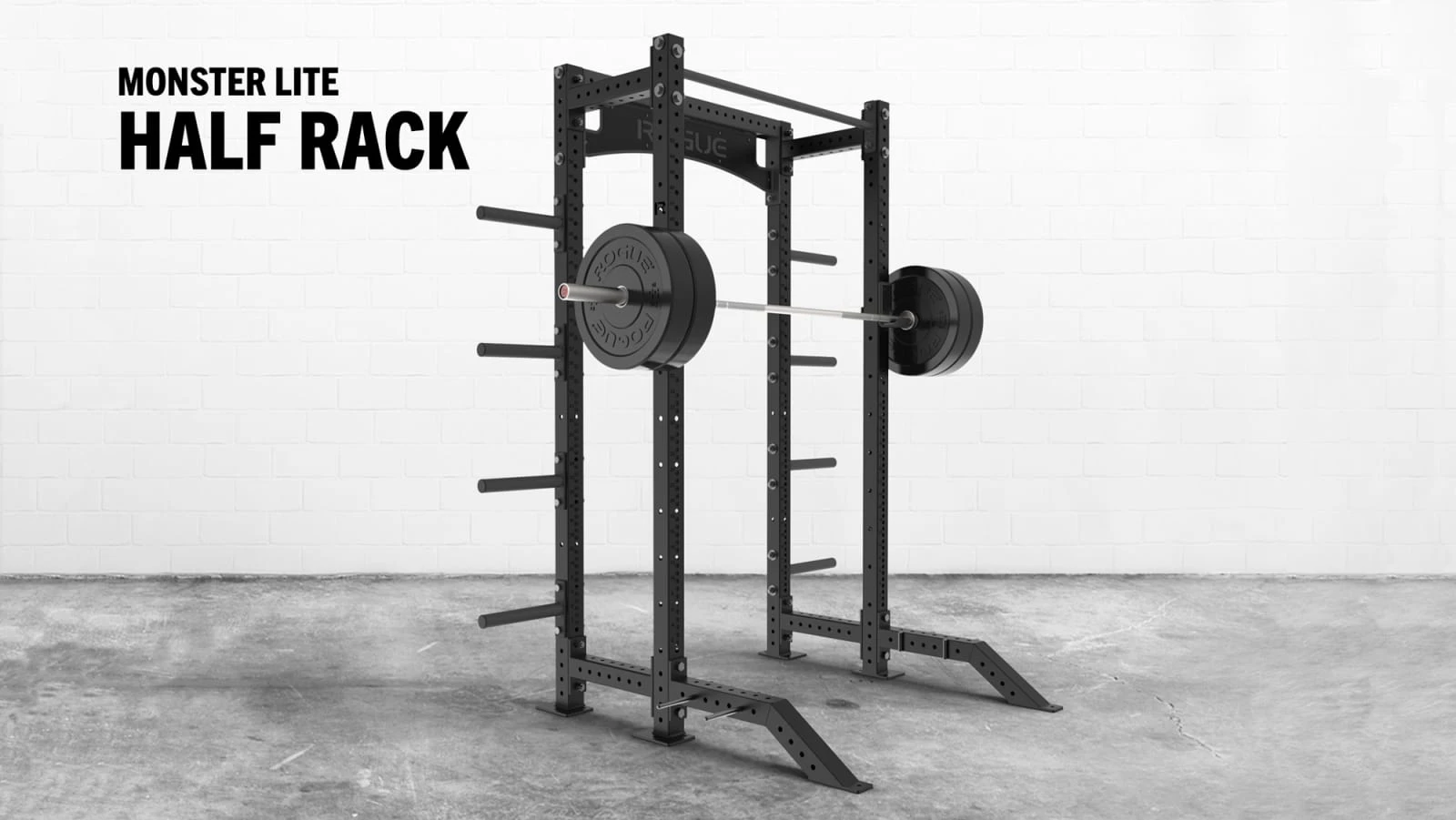More space-efficient than a standard power rack with greater storage potential than most squat stands, the Monster Lite Half Rack is a unique hybrid unit that sacrifices none of the quality or durability of its full-size cousins.