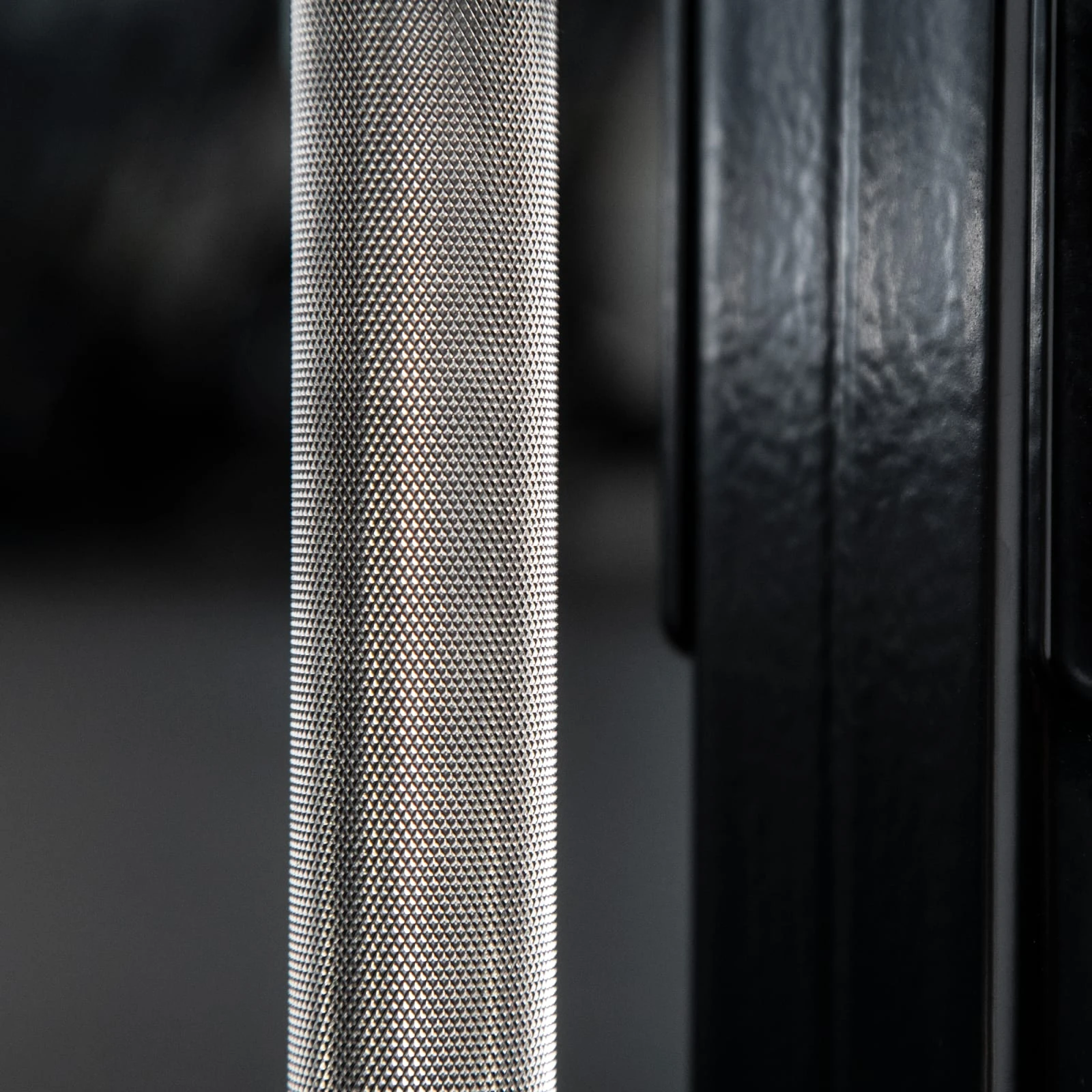 As with the original model, gym owners can customize the Monster Utility Bench 2.0 during the ordering process by selecting a preferred bench height (Standard vs. Shorty) and style of bench pad (Standard vs. Premium vs. Competition Fat Pad™ vs. Thompson Fat Pad™). The Shorty Bench option allows athletes to use a Fat Pad™ while still keeping the unit at a more traditional flat bench height. We’re also offering an alternative to the standard MG Black front handle, as customers can add a Knurled Stainless Steel handle to their order a la carte in a short or standard-length option. The knurling on the stainless handle is the same pattern found on our Rogue Ohio Bar.