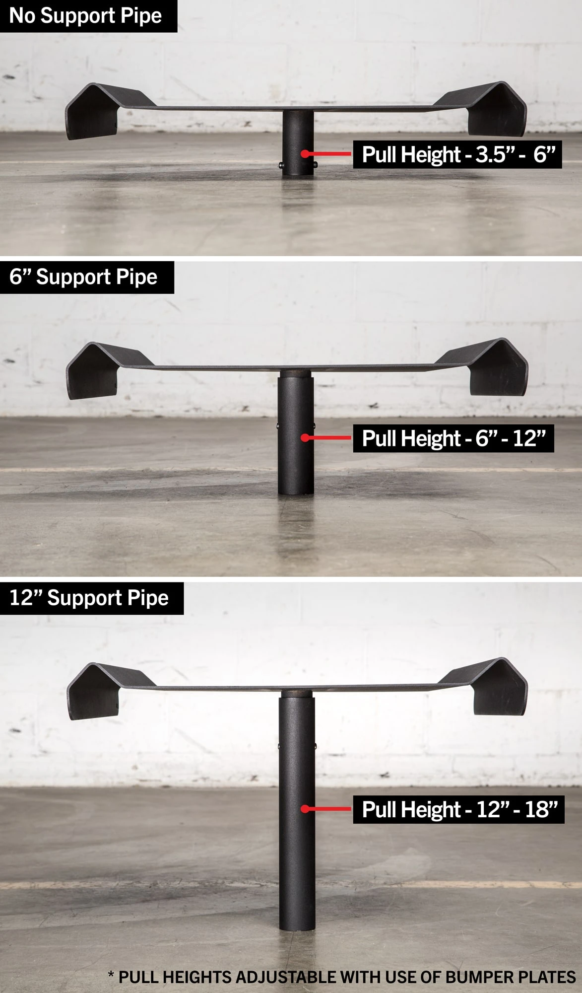 Rogue’s Echo Pulling Blocks are designed to transform any stack of standard Olympic bumper plates into a more stable, fully adjustable platform for the targeted training of individual barbell movements. A great cost-efficient and space-efficient option for any gym, this unique system includes (2) laser-cut steel loading pans, (2) 6” support pipes, and (2) 12” support pipes.