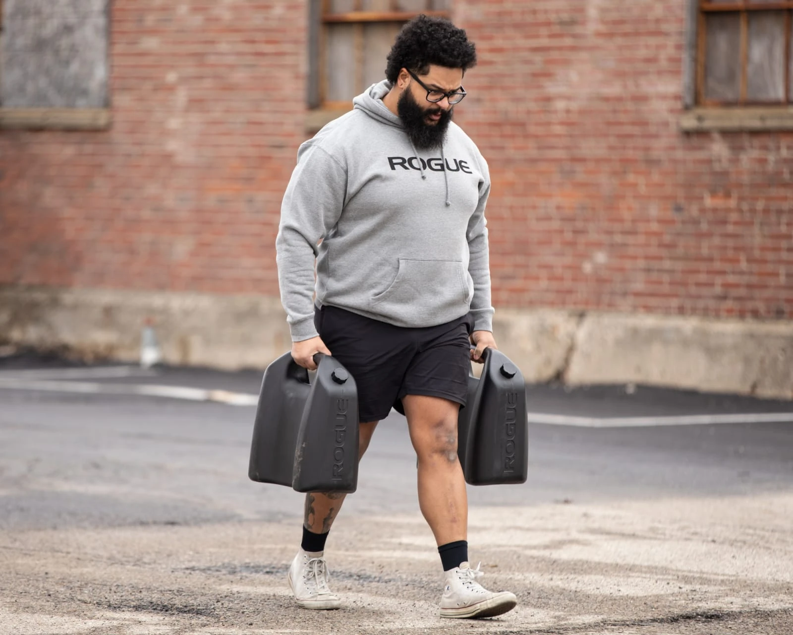 Rogue’s JC-40 Jerry Cans are large, durable, handle-top containers that athletes can fill with water to perform Farmers Walks, Overhead Presses, Squats, and other movements at a customized weight load. These were inspired by the original metal Jerry Cans used in competition at the CrossFit Games back in 2011; but are produced here in a lighter, more economical HDPE (high-density polyethylene) design.