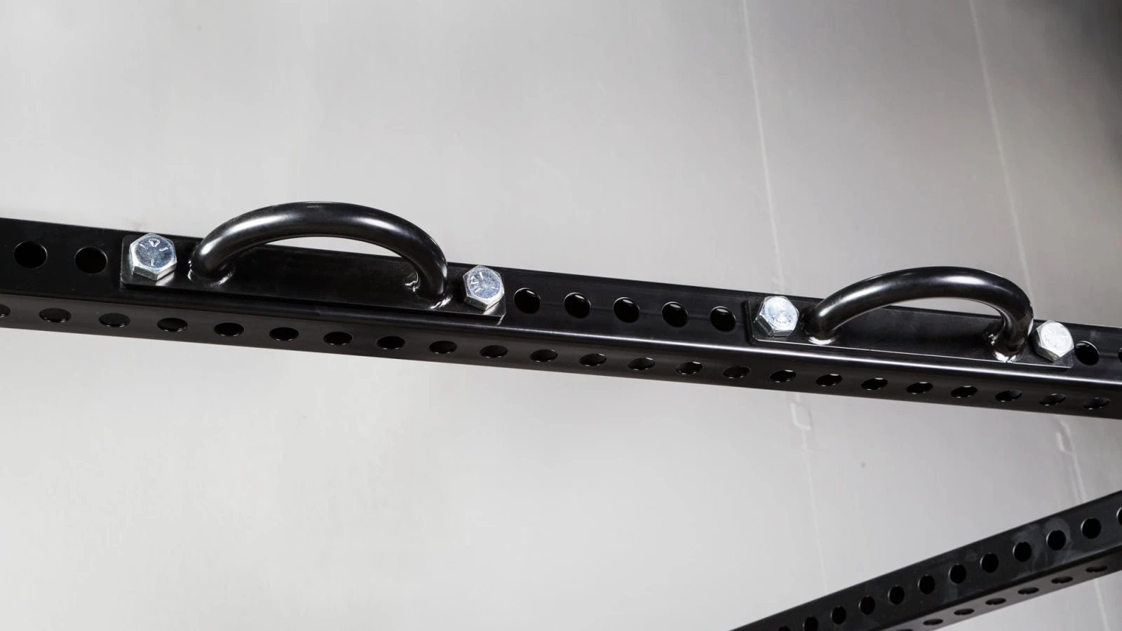 The four uprights positioned behind the power rack form the customizable mass storage system. This section has an inside depth of 70” directly behind the rack, and 43” on the outside, with a pair of angled beams connecting the outermost front uprights to the back of the RM-4 (hence the “wingspan” name).
