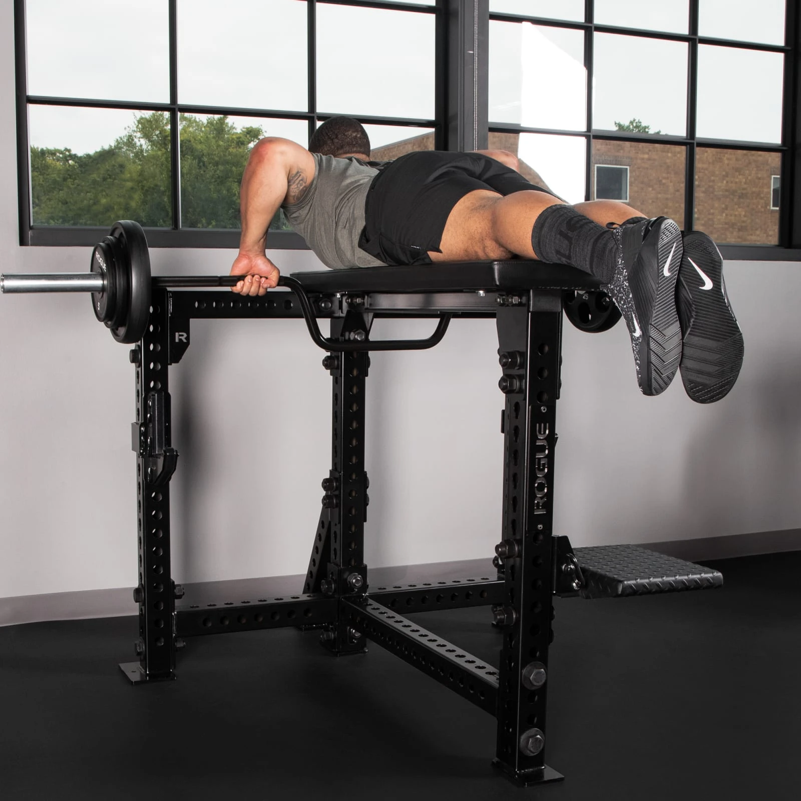 The Rogue Seal Row Bench is uniquely optimized for both dumbbell and barbell seal row movements (aka bench pulls), and can be ordered here with our own exclusive new Seal Row Bar—a 28.5mm cambered barbell that offers superior range of motion for this back-isolating exercise along with convenient rackability within the unit.