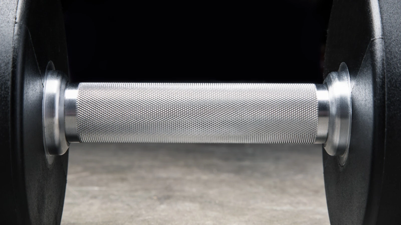 Each precision-machined handle on Rogue’s Urethane Dumbbells is the same 6″ in length and includes a medium-grade knurling for a firm but comfortable grip. The handle diameter is 31MM for dumbbells up to 45LB and 34MM for dumbbells 50LB and up.