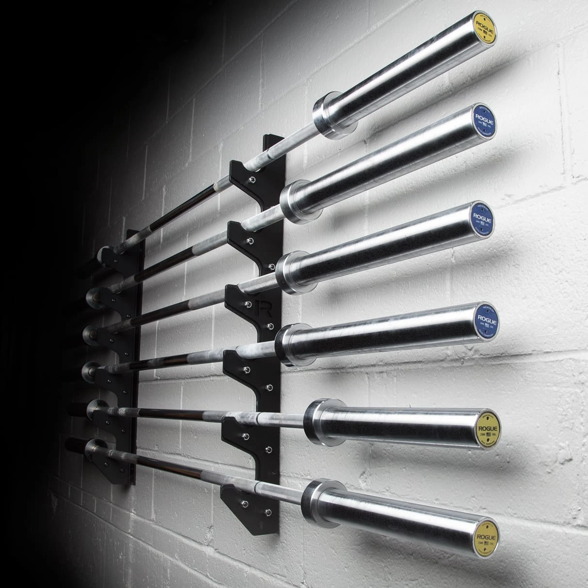 This is a variation on the standard Rogue Gun Rack™, storing up to six barbells with the added option of laser-cut UHMW plastic inserts for greater protection.