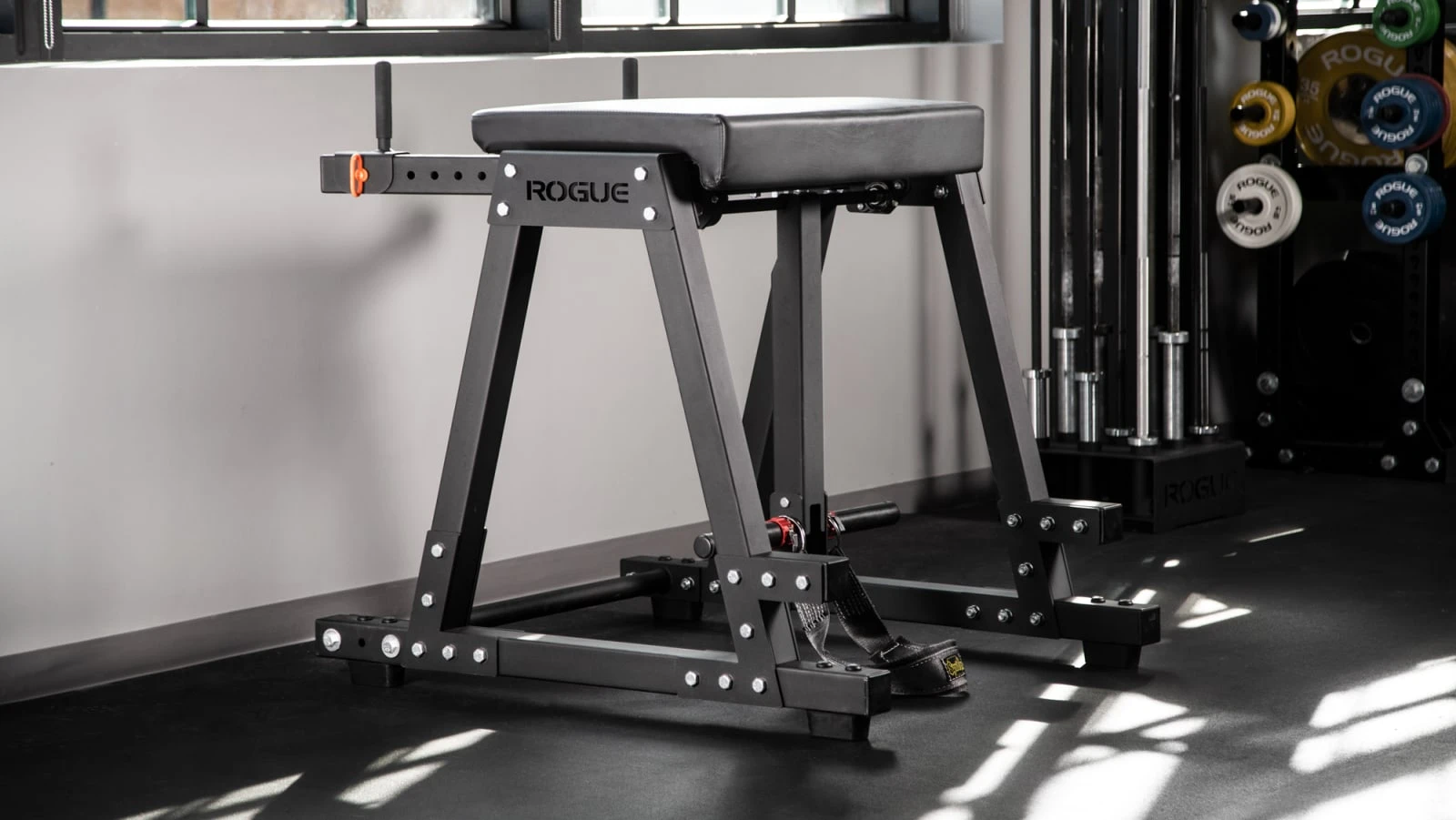 *Rogue’s Reverse Hyper Roller Attachment features a quick release design for easy transitions from the hyper straps to the roller system.