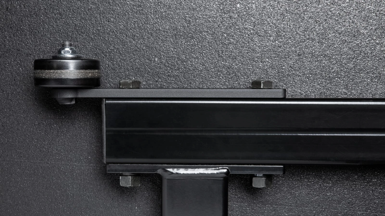 The (2) brackets are Made in the USA from 3/8″ thick laser-cut steel, and mount to the 5/8ā holes at the base of an Infinity or Monster Lite squat stand. The durable wheels measure 3ā in diameter. Customers have the option of adding a pair of band pegs to their order (selectable in the purchase area), which can be inserted into the front base tubes to serve as safety handles when moving the unit.