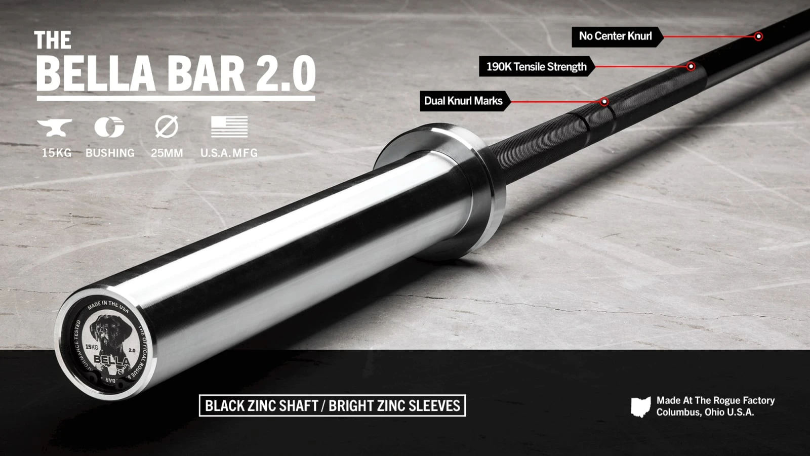 The Bella Bar is Rogue’s go-to multipurpose 15KG barbell for female athletes. Fully machined and assembled in the USA, this versatile ladies bar is uniquely optimized for Olympic weightlifting, powerlifting, and/or a CrossFit WOD.